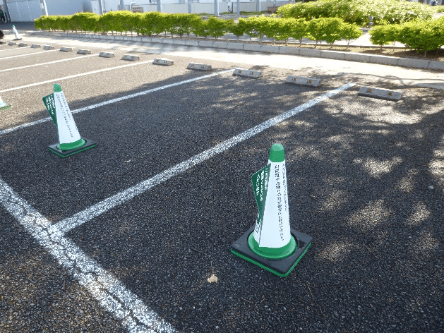 - 上記の国際シンボルマーク駐車場に併設しており、緑のコーンが目印です。