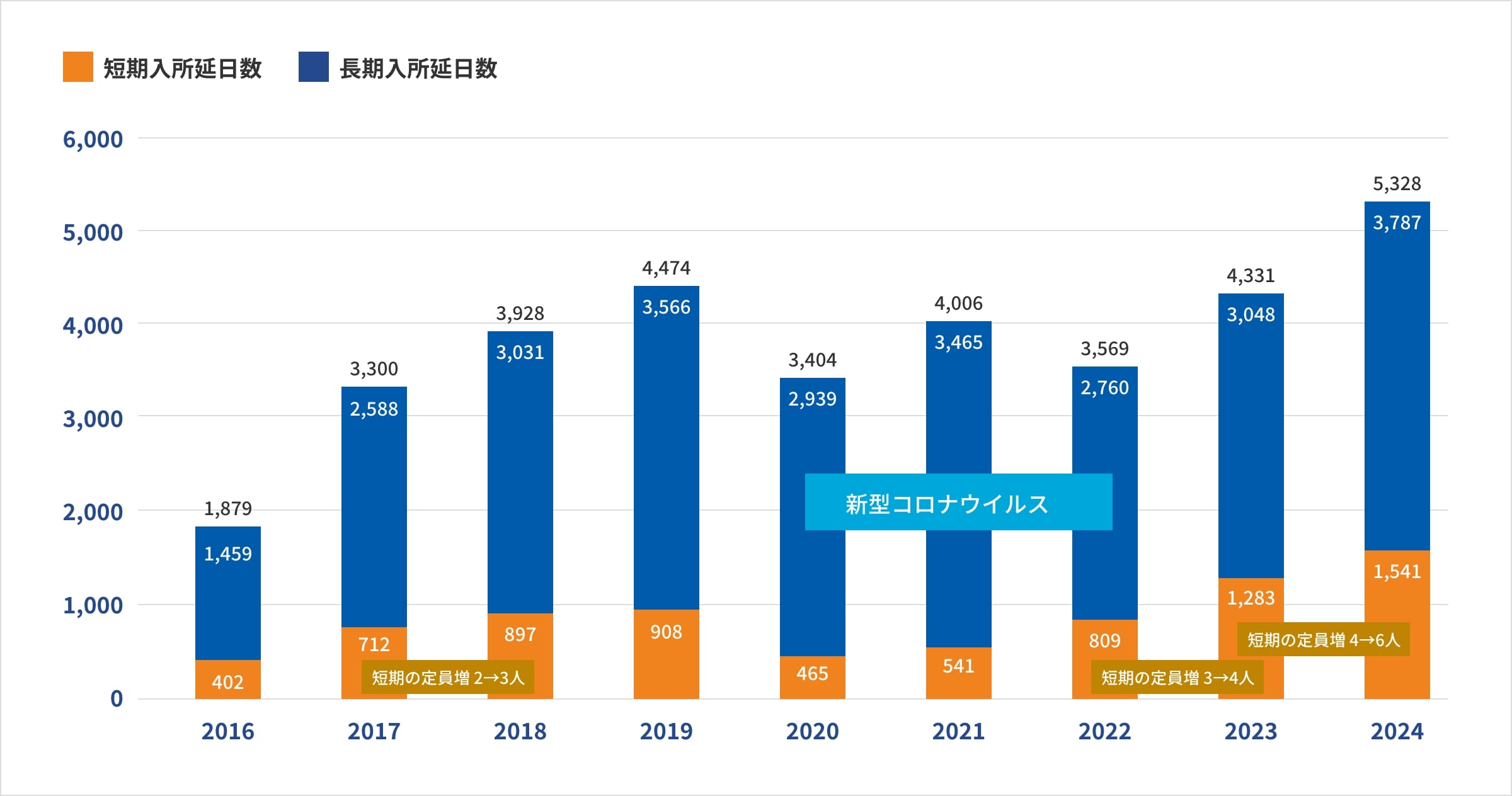 近年は、短期入所の利用希望に応えるため、利用定員を令和6年に大幅に増やし、多くのご利用をいただいています。
