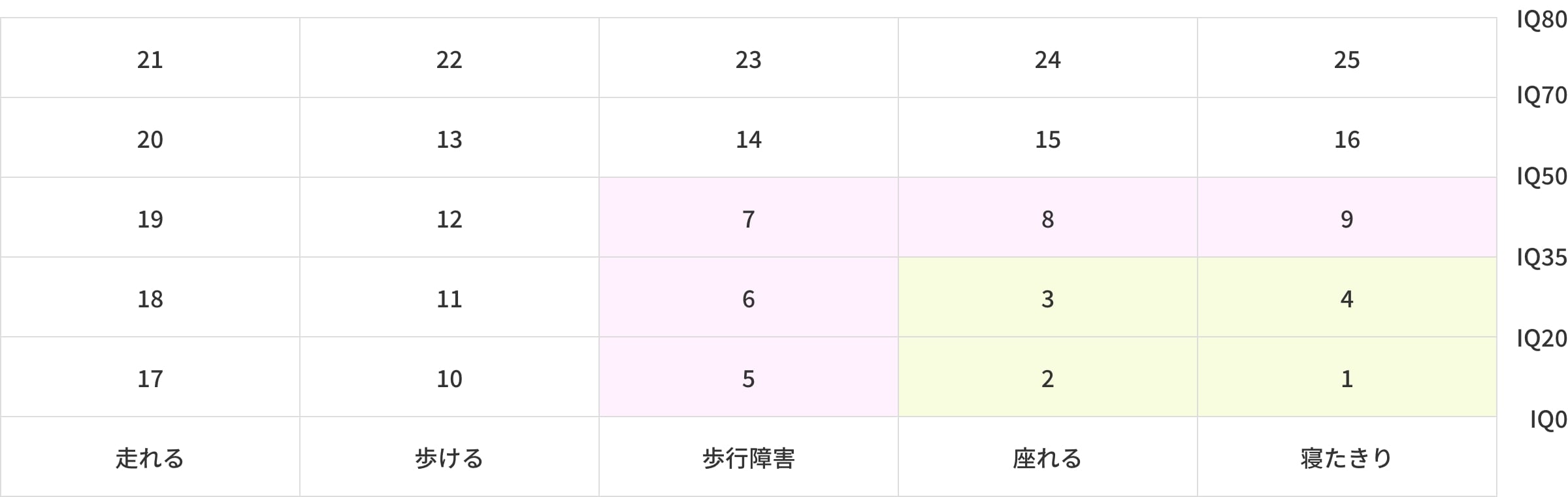 入所の条件を緩和し、重症心身障がい児(図1,2,3,4)に加え、「周辺児」(同5,6,7,8,9)も条件次第で受け入れることとしました。